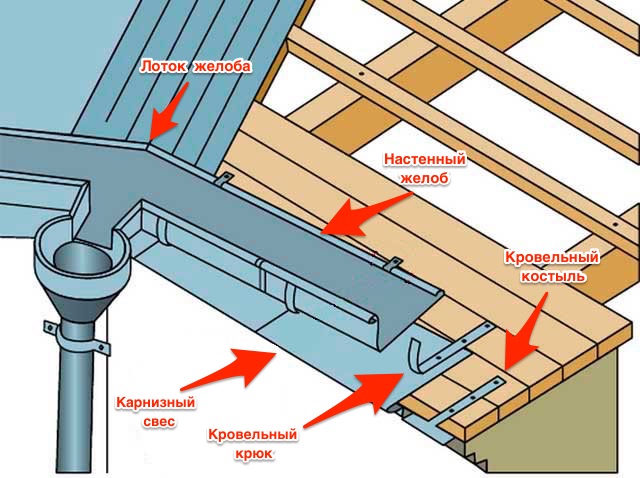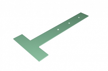 Он необходим для предупреждения возможных деформаций кровельного металла и выполняет несущую функцию. Т-образные костыли крепятся к обрешетке под карнизный свес с шагом 60-70 см при помощи дюбель-гвоздей. Стандартные размеры плоских кровельных костылей - 20*4, 25*4, 40*4. Он имеет 3 отверстия для крепления, при этом во время монтажа используется только 2. Еще одно отверстие является «запасным» и используется в случае, когда одно из отверстий попадает между элементами обрешетки. Для защиты от коррозии снаружи кровельные костыли покрываются порошковой краской.