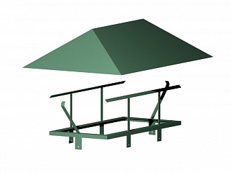 В ситуации, когда периметр выхода вентшахты больше 4000 мм или требуется организовать выход нескольких вентканалов и дымоходов в одну большую трубу, желательно использовать крышный зонт на сварном каркасе. Он придает конструкции необходимую жесткость и позволяет надежно закрепить конструкцию на крыше. Снаружи каркас покрывают порошковой краской. В зависимости от конфигурации вентиляционной шахты зонты могут быть круглыми или прямоугольными. Верхняя часть зонта как правило изготавливается из оцинкованной стали толщиной 0,5-1,2 мм.